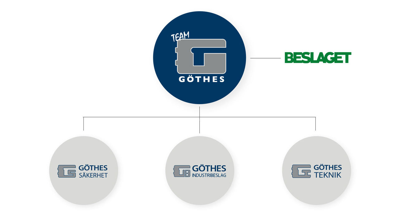 Göthes Industribeslag AB tillgodoser OEM-marknadens behov av lösningar inom lås och beslag. SysterbolagetGöthes Säkerhet AB utvecklar kompletta säkerhetslösningar med utgångspunkt från exempelvis lås, larm, dörrstyrning, beslag och passersystem. Koncernens tredje företag, Göthes Teknik AB, marknadsför bland annat fästelement,